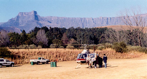 Prof. Keith Greggor and Paul Davies (chopper pilot) relaxing during a survey in KZN.