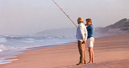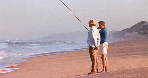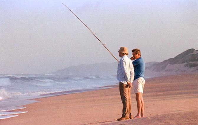Prof. Keith Greggor and Paul Davies (chopper pilot) relaxing during a survey in KZN.