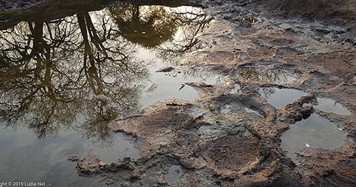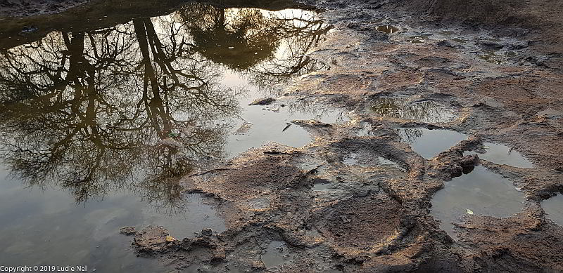 Early morning surprise - elephant tracks at the waterhole.